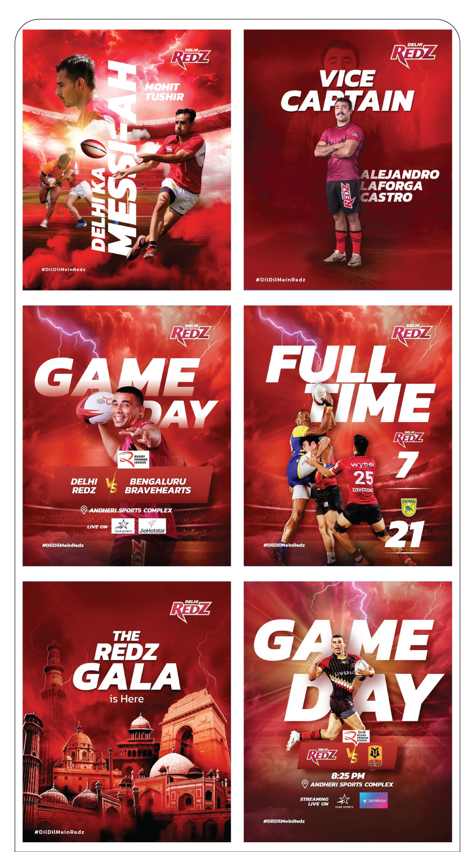 For Delhi Redz, the Delhi Rugby Team, we created bold and energetic creatives that capture the team’s passion, strength, and winning spirit.
