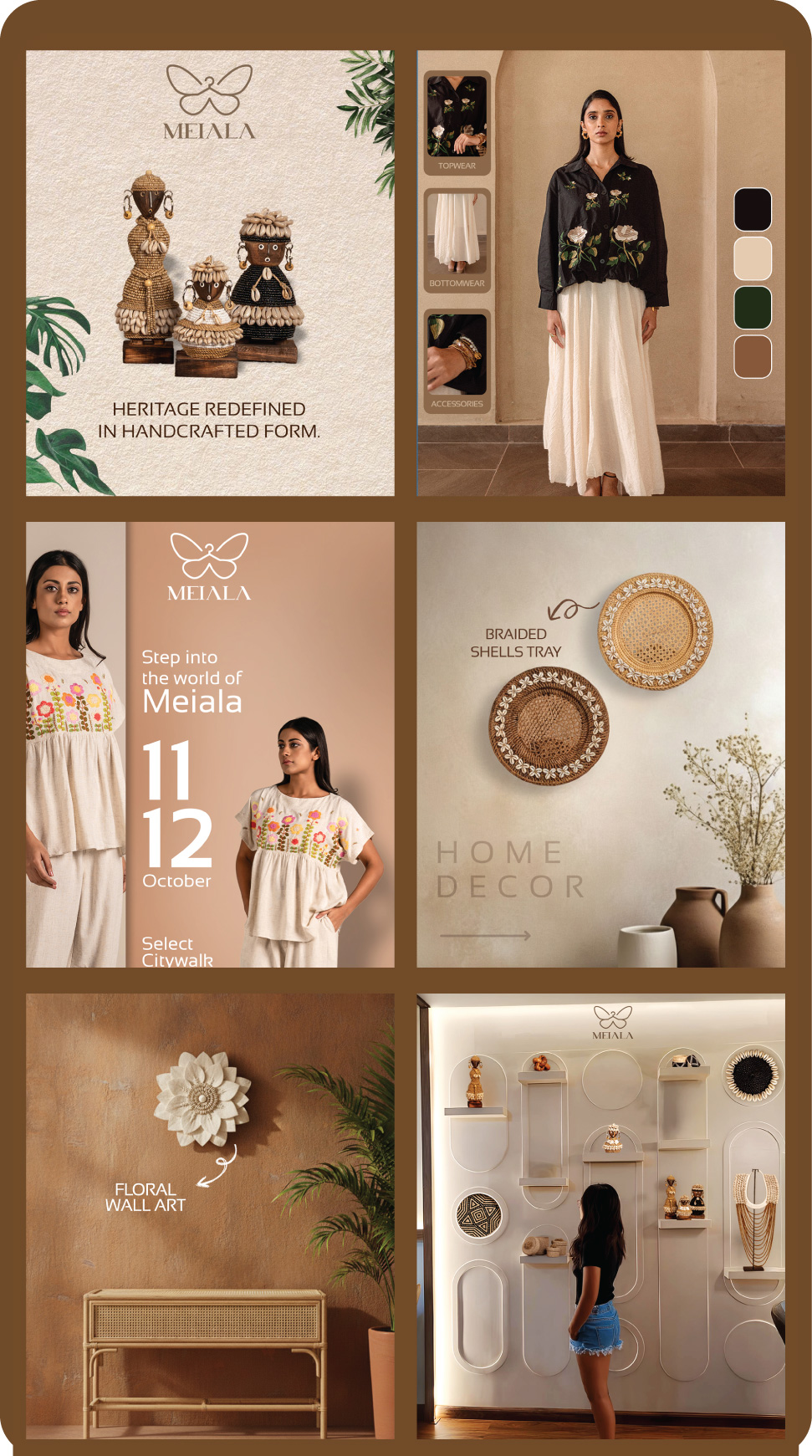 For Meiala, we designed stunning creatives featuring model shoots that beautifully highlight the brand’s elegance and contemporary style.
