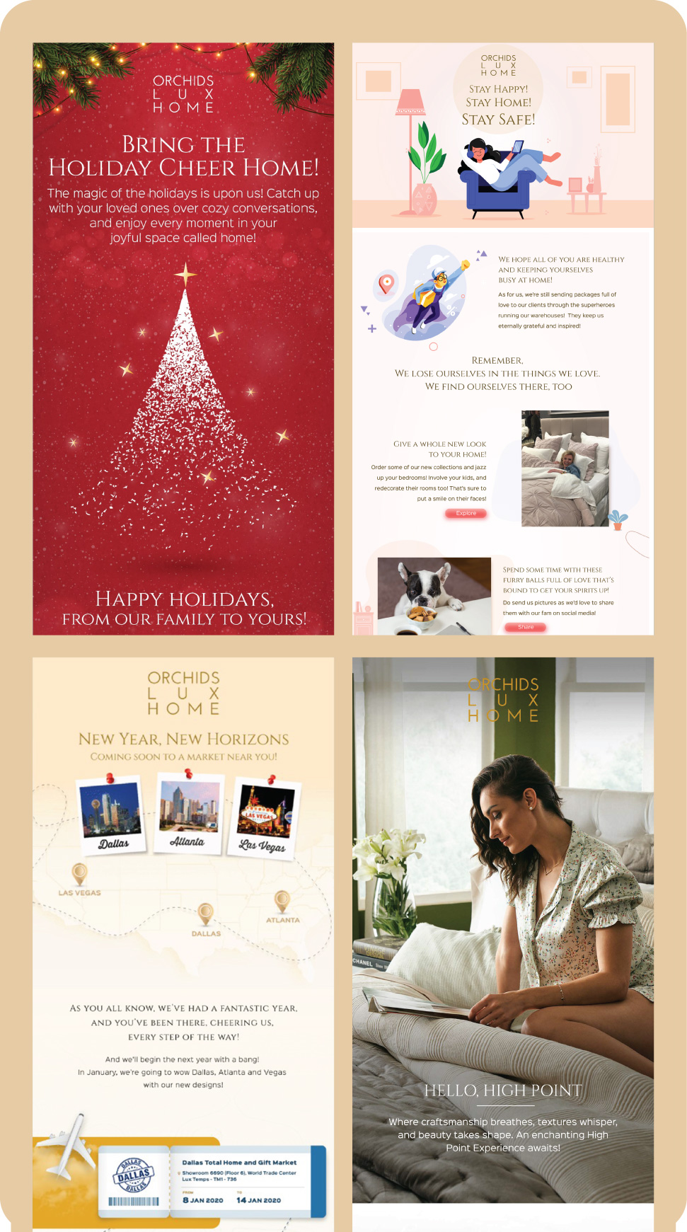 For Orchids Lux Home, a luxury home décor brand in the USA, we manage their digital marketing and website content, showcasing timeless elegance through refined storytelling and design.