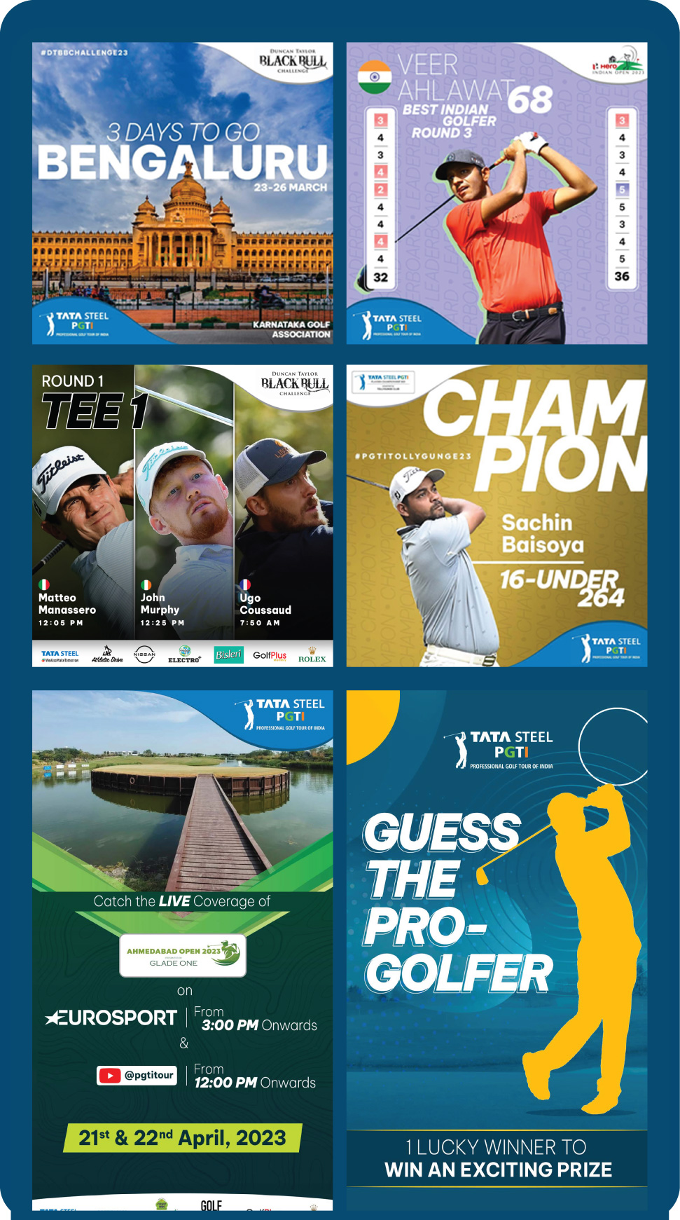 For PGTI, the Professional Golf Tour of India, we built an engaging digital presence with live event coverage, same-day winner updates, and scoreboard creatives that bring the excitement of the game online.