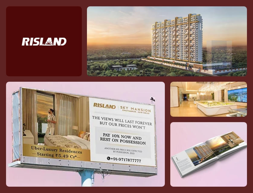 For Risland, a global real estate developer — we designed premium coffee table books, brand collaterals, and hoardings to elevate customer perception and drive engagement.