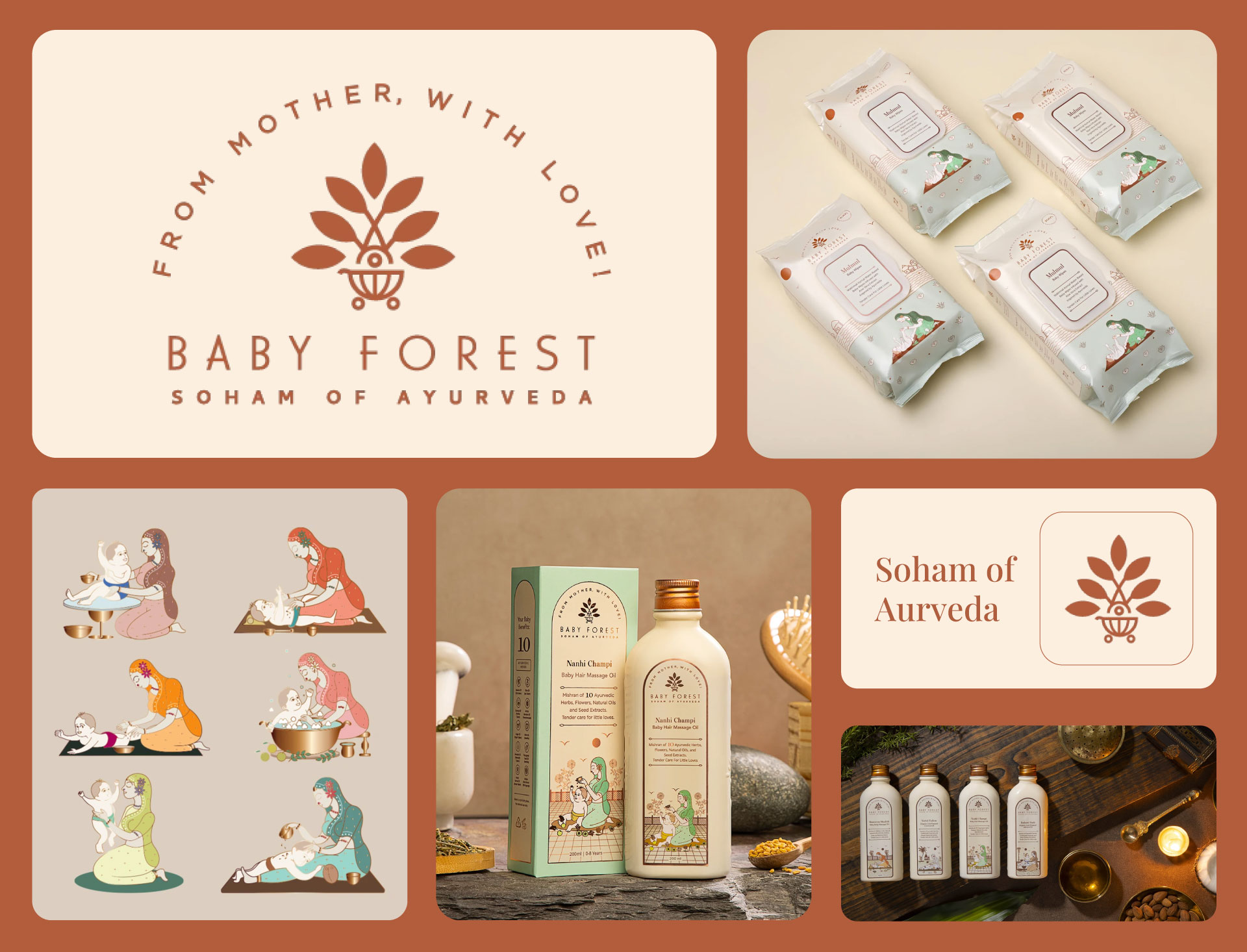 Baby Forest, a premium Ayurvedic baby-care brand — we developed the brand logo and crafted its positioning concept rooted in purity, tradition, and gentle care.