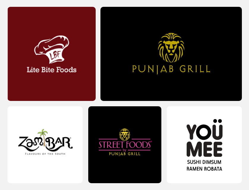 One of India’s leading F&B powerhouses with brands like Punjab Grill, YouMee, Asia 7, Street Foods, and Zambar. We drive creative branding across their portfolio — keeping each brand distinct, yet rooted in LBF’s signature flavor of innovation.